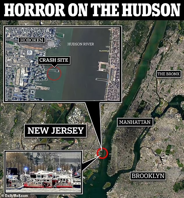 The terrifying crash took place at around 3:15 p.m. on Thursday, closer to the New Jersey side of the Hudson River just off the tip of Lower Manhattan