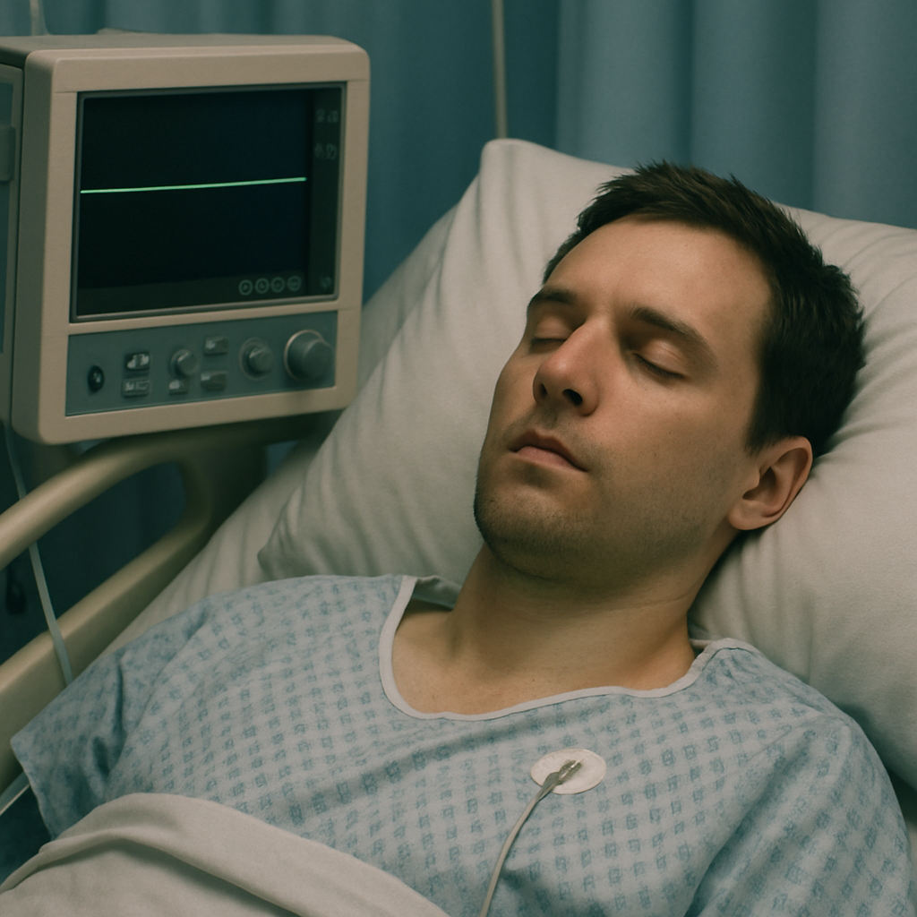 Only the faint hum of the overhead fluorescent lights provided any sense of life. On the hospital bed lay Chandler—a brave police officer known for saving countless lives. Though he had managed to make it to the hospital on his own, now his body lay motionless, his breaths shallow and fading. The rhythmic beeping of the machines monitoring his vital signs grew more sporadic, more alarming with each minute.